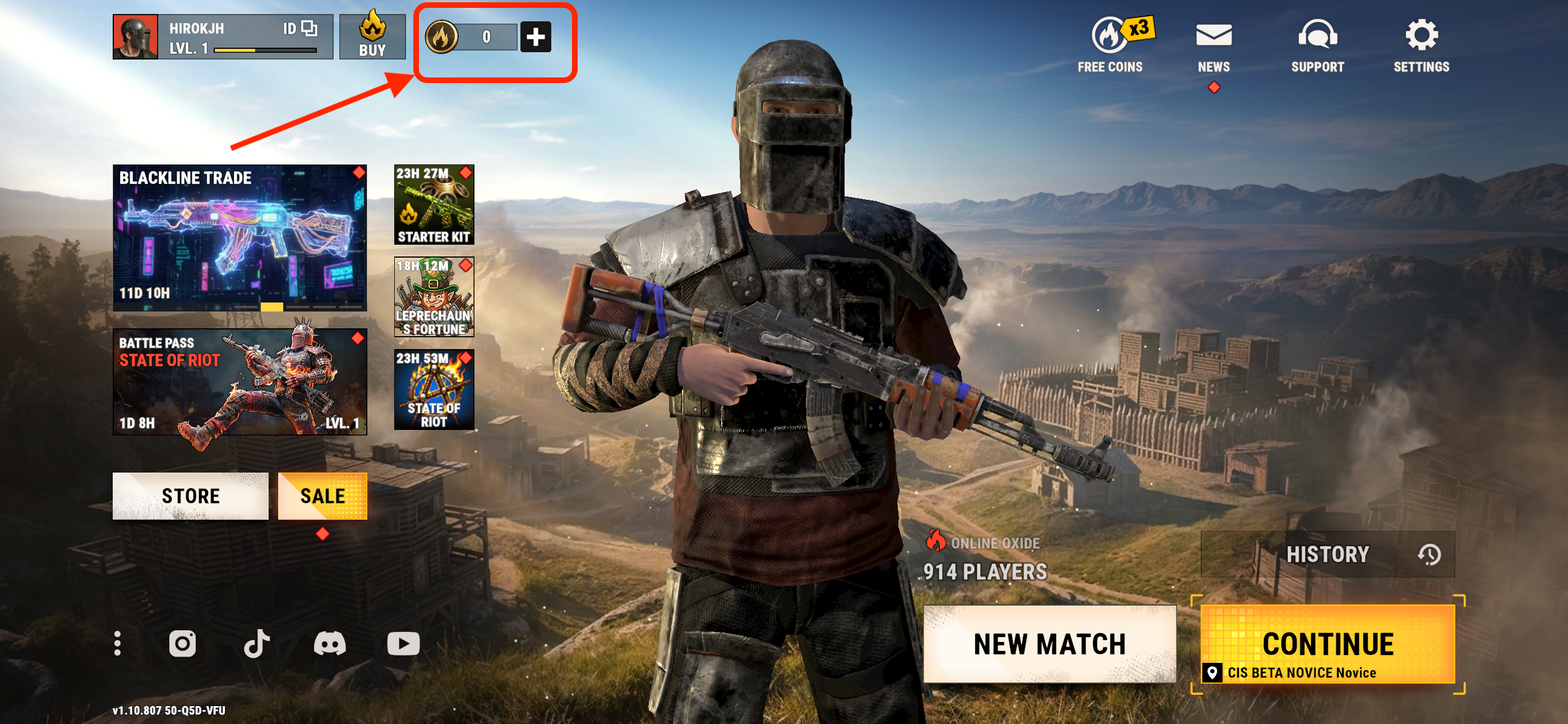 - On the main screen, tap the "coins icon" in the top-left corner.