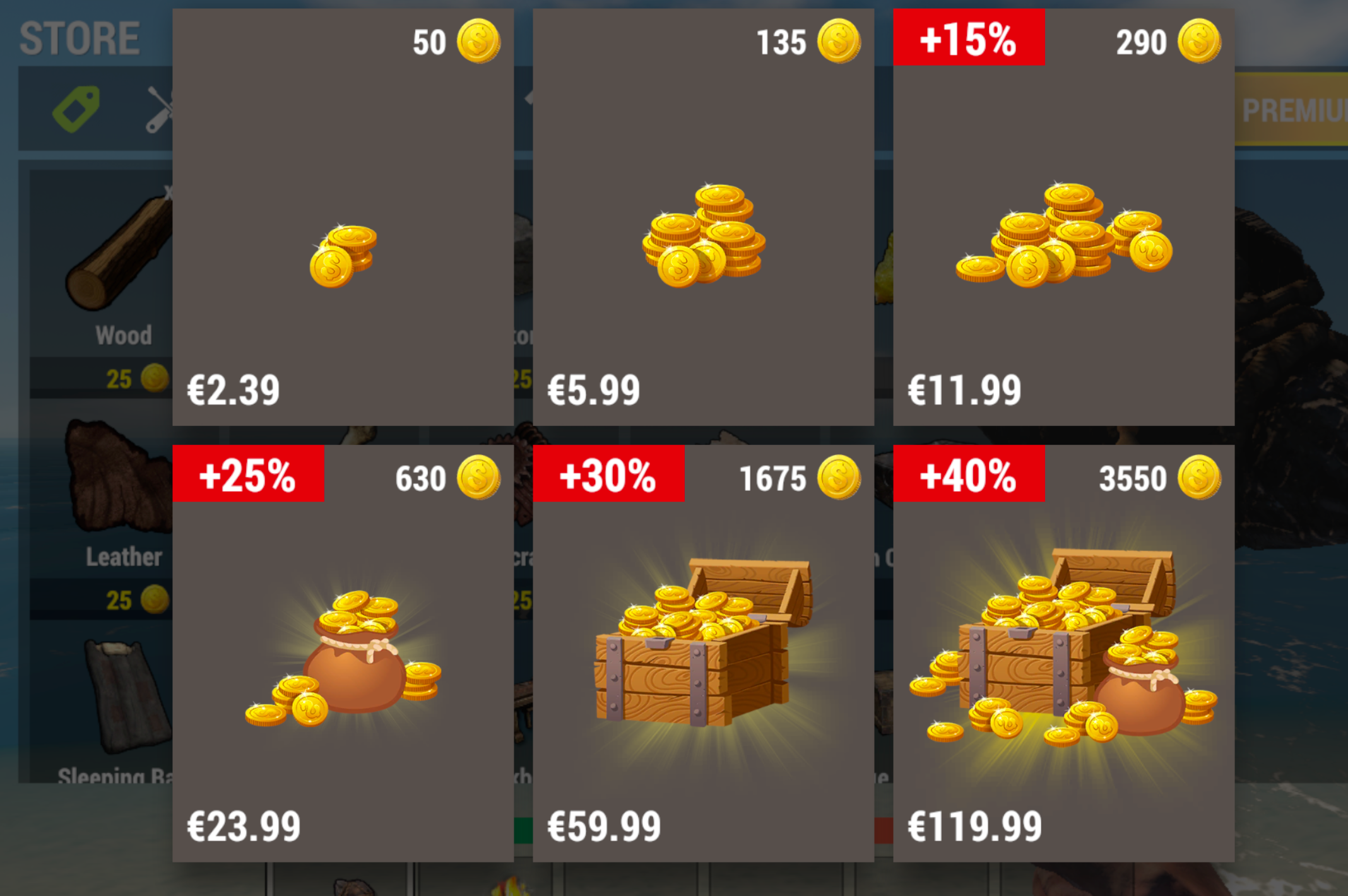 Coins are needed to purchase resources in the game, as well as for buying items in the store. To buy coins: